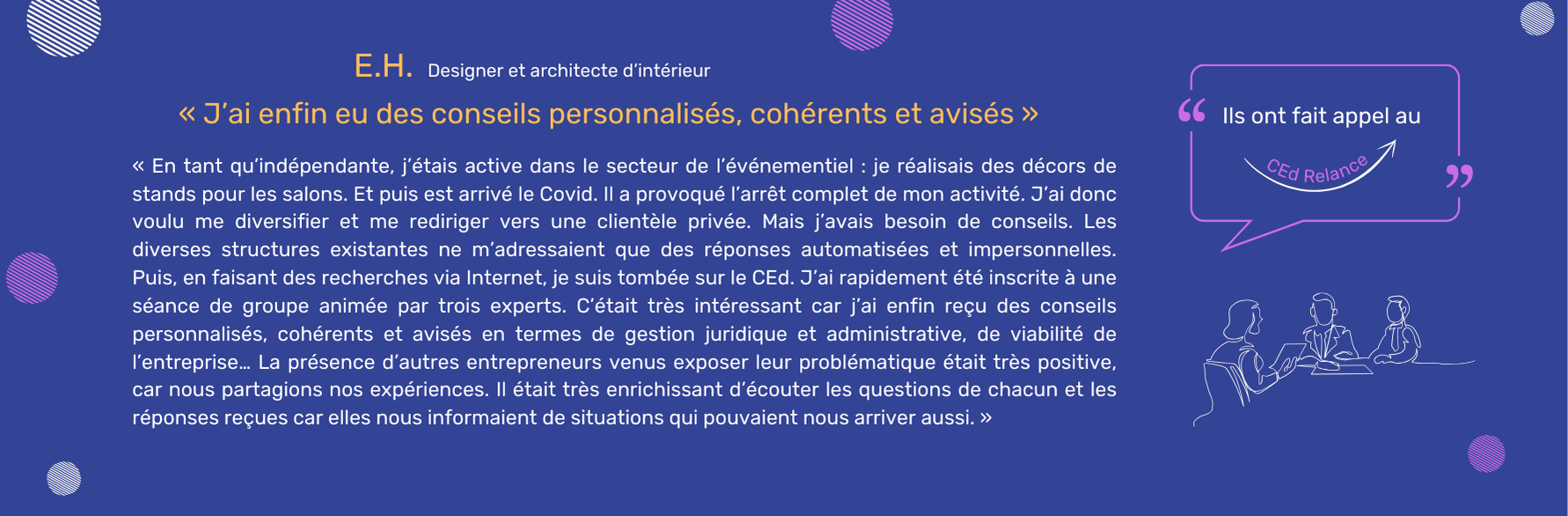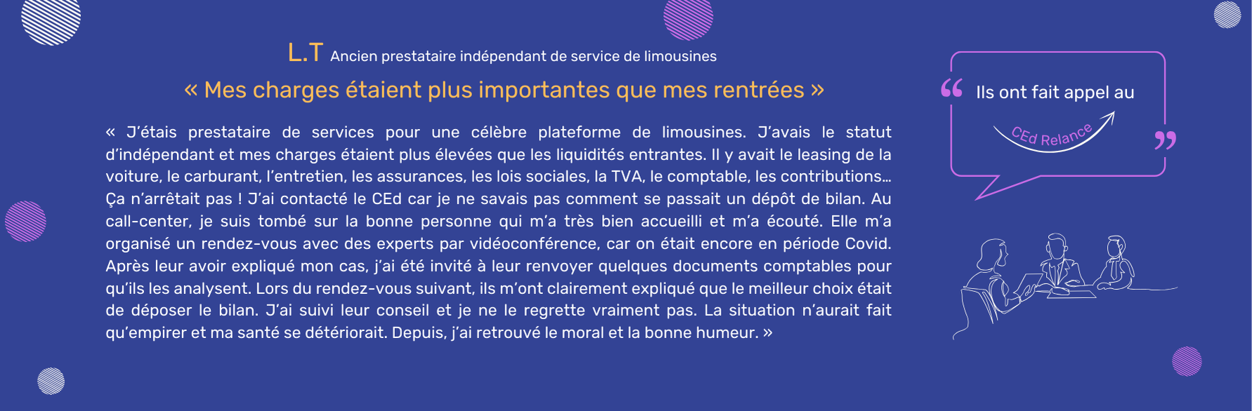 Het CEd Relance luistert naar u en vindt oplossingen tijdens een individueel of gezamenlijk gesprek met zijn deskundigen.
