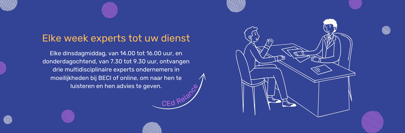 Elke dinsdagmiddag van 14 tot 17 uur en donderdagochtend van 7.30 tot 10 uur ontvangt een multidisciplinair duo van experts ondernemers in moeilijkheden om naar hen te luisteren en advies te geven, in de kantoren van BECI of online.